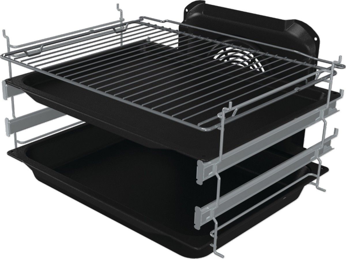 - Vedení plechů v troubě: Částečně vysouvací teleskopické lišty na 2 úrovních