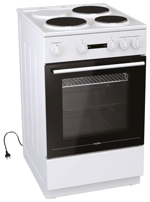 Elektrický sporák Mora E 101 AW v bílém provedení se 3 litinovými plotnami a klasickou troubou překvapí úspornou energetickou třídou "A" a objemem trouby 68 l. Kromě klasického pečení má trouba i speciální program na čištění trouby ECO CLEAN, který Vám zajistí bez velké námahy vyčištění vnitřku trouby a je maximálně ohleduplný k životnímu prostředí a Vašim nákladům na čistící prostředky. Uvnitř se nachází praktické osvětlení, takže budete mít po celou dobu pečení dokonalý přehled o připravovaném pokrmu. Ve spodní části sporáku je praktický úložný prostor, do kterého snadno uložíte příslušenství v podobě roštu a mělkého plechu. Tento model je vhodný na chaty či kamkoli, kde není dostatečné elektické napětí a je třeba mít sporák s omezeným chodem.