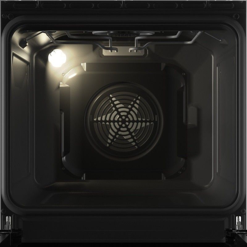 Uvnitř 70l trouby najdete kromě topných těles také ventilátor, který pomáhá rovnoměrnému propečení jídel. Pečení s ventilátorem a horním topným tělesem je ideální pro pečení větších kusů masa pro celou rodinu a dolní topné těleso využijete pro pečení nízkých kynutých těst či pro zavařování.