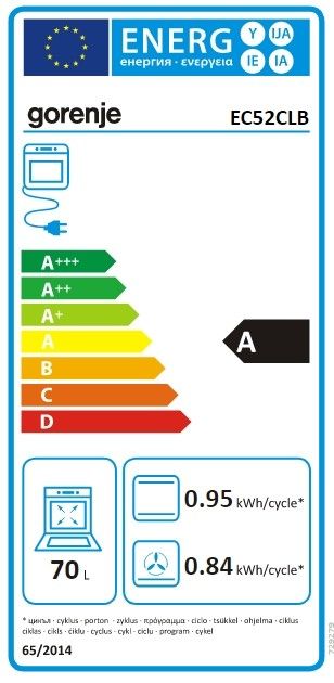 - Spotřeba energie: 0,84 kWh (Nucená konvekce vzduchu), 0,95 kWh (konvenční tepelná funkce)