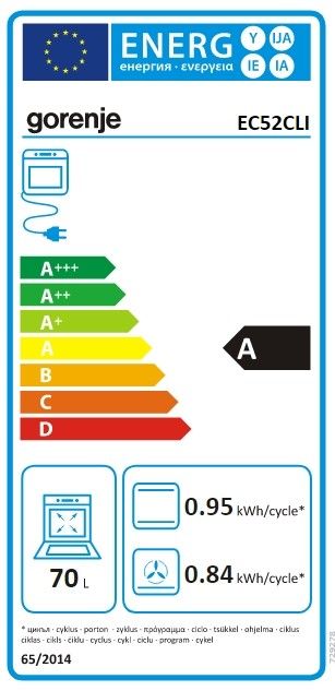 - Spotřeba energie: 0,84 kWh (Nucená konvekce vzduchu), 0,95 kWh (konvenční tepelná funkce)