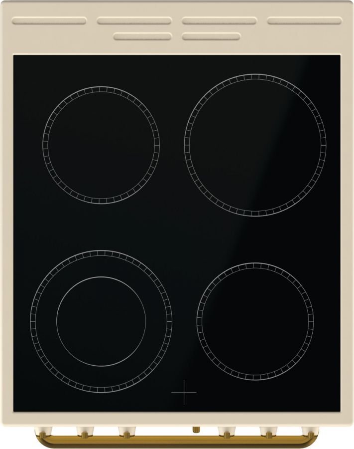 Elektrický sporák s energetickou třídou A. Má 4 varné zóny, multifunkční troubu 70 l a elektronické programovací hodiny s analogovým displejem.
