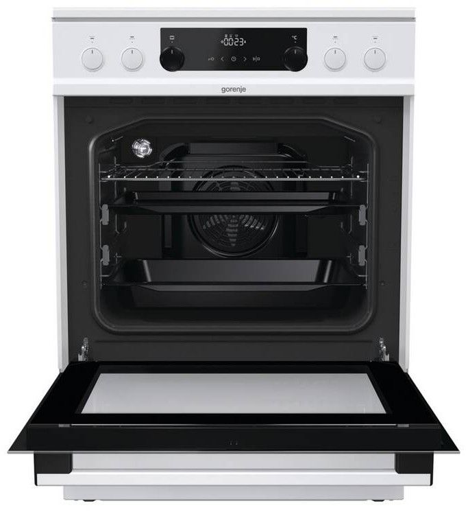 Sporáky Gorenje poskytují rozšířený prostor pro pečení a použití mimořádně velkých plechů. Inovativní řešení umožňují optimalizovat spotřebu energie a rovnoměrné pečení jídla bez ohledu na jeho množství. Celková šíře trouby je efektivně využita, přičemž mimořádná technologie vám zajistí rovnoměrné upečení jídla na všech úrovních.