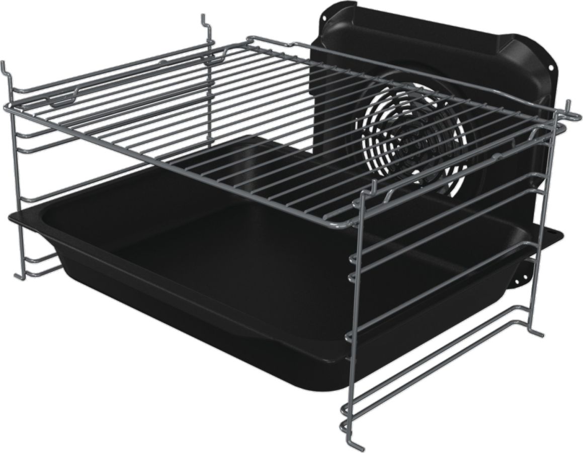 Kombinace chytrého pohybu vzduchu, rovnoměrně rozmístěné prostory mezi pozicemi plechu a speciální mírně zaoblená dutina zajišťují rovnoměrné propečení jídla na každé úrovni a protože je objem trouby větší, přehled je také vynikající.