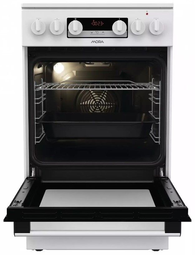 Elektrický sporák C 5655 BW v bílém provedení se sklokeramickou deskou a multifunkční troubou energeticky spadá do úsporné třídy A. Materiál použitý na varnou desku je tepelně odolný, snadno omyvatelný a vydrží zátěž až 100 kg a s ukazatelem zbytkového tepla na desce jste chráněni před nepříjemným popálením a jinými nehodami. Díky digitálnímu časovému spínači s hodinami se Vám již nikdy nespálí oběd, tato praktická funkce Vám přinese mnoho užitku. Lze nastavit odložený start a ukončení pečení, pouze ukončení pečení a minutka, samozřejmostí je nastavený aktuální čas. Výkonná multifunkční trouba o objemu 70 l má celkem osm různých programů s přesnou regulací teploty v rozmezí 50-275 °C. Připravíte s ní jídla rychle a šetrně, takže si zachovají maximum vitamínů a stopových prvků. Mezi funkcemi naleznete horní a dolní topné těleso, kruhové těleso s ventilátorem či program Pizza. Horkovzdušné pečení umožňuje péct ve více vrstvách najednou i různých druhů pokrmů, kdy při pečení nedochází k vzájemnému ovlivnění odlišných chutí a vůní například maso s pečivem. Nové bezpečné závěsy dvířek zaručují bez Vaší asistence velmi tiché a šetrné zavírání dvířek trouby. Celý prostor trouby je osvětlený pro větší přehlednost o stavu pokrmu. Ve spodní části sporáku je praktický úložný prostor, do kterého snadno uložíte příslušenství v podobě roštu a MAXI pekáče XXL o objemu až 8 l.