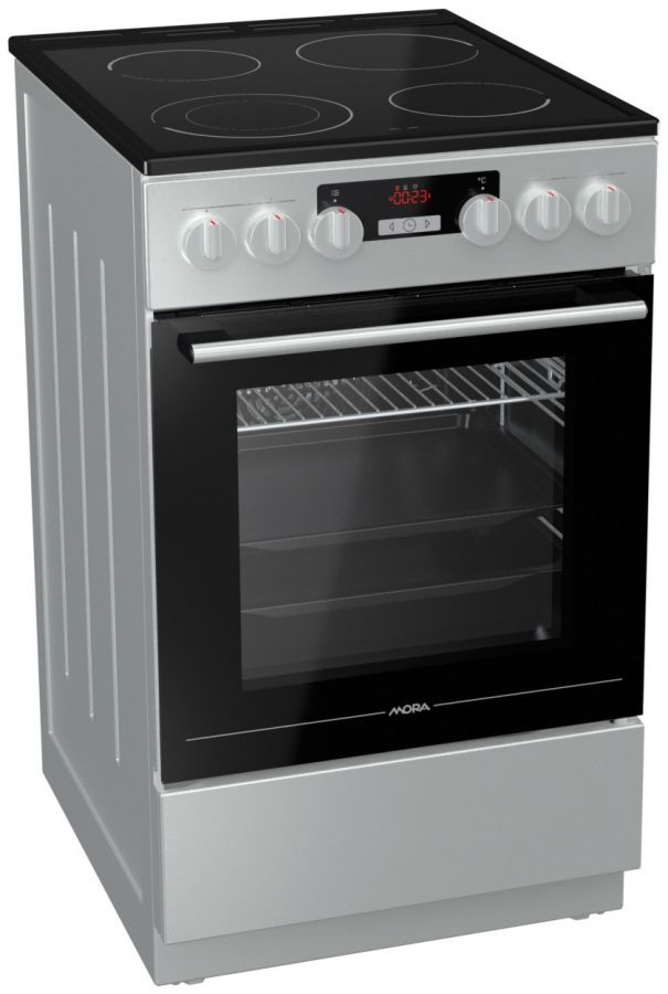 Elektrický sporák s energetickou třídou A. Má 4 varné zóny, multifunkční troubu - MF11 70 l, digitální dotekový časový spínač s hodinami, programování doby pečení a výsuvné teleskopické rošty (1 úroveň).