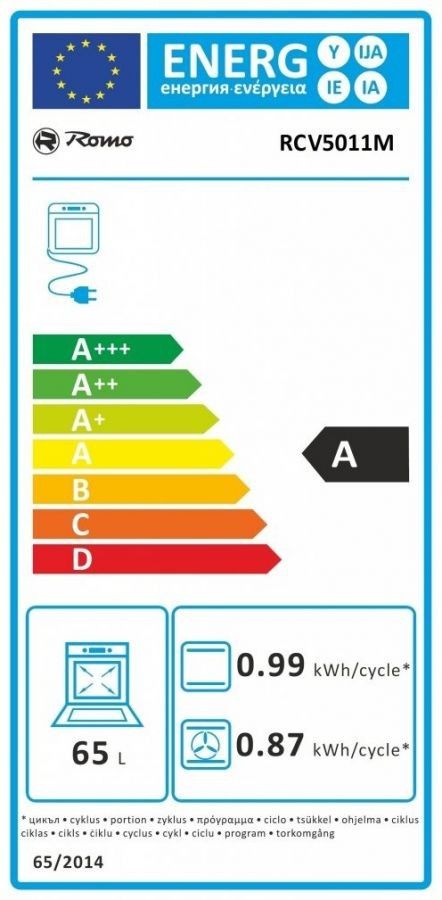 Spotřeba - horkovzdušné pečení: 0,87 kWh