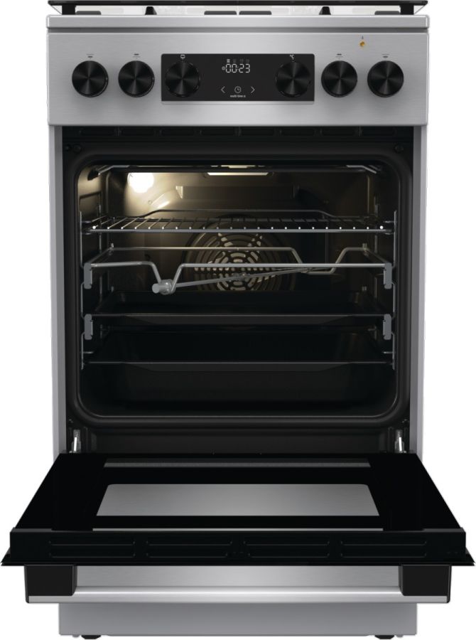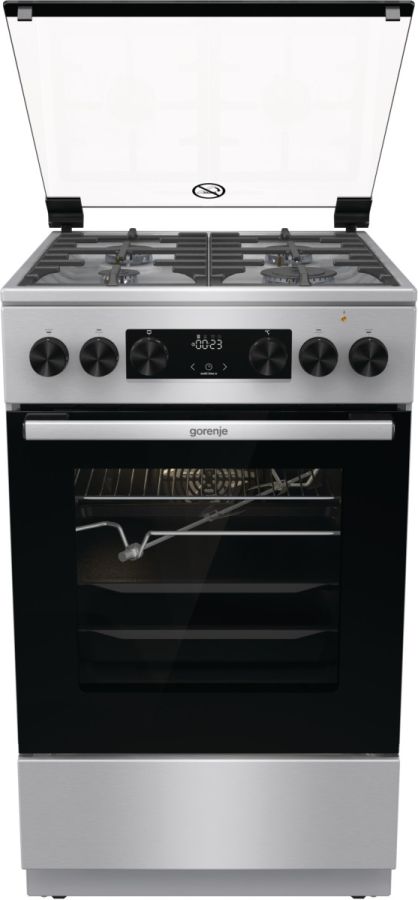Kombinovaný sporák s energetickou třídou A. Má 4 plynové hořáky, klasickou troubu 70 l, jednoruční zapalování a trojité zasklení dveří trouby.