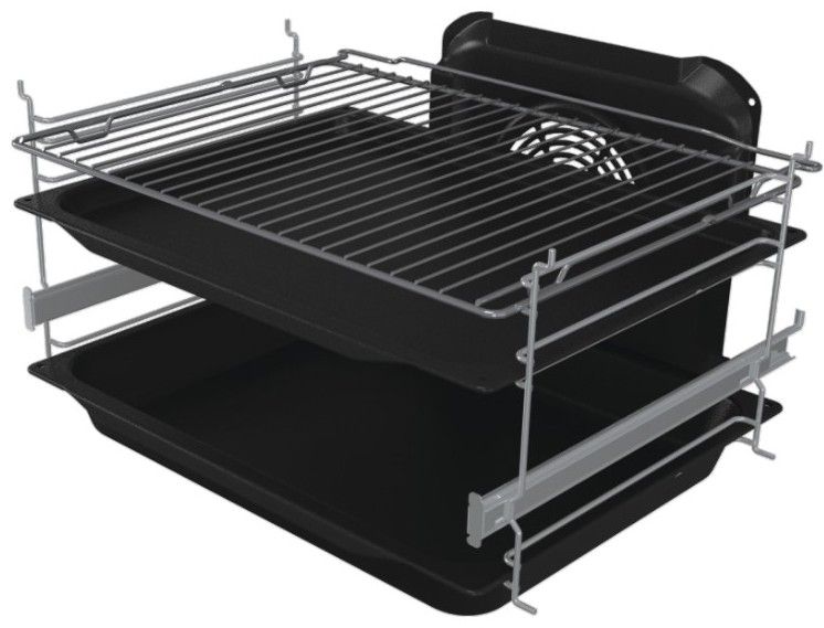 - Vedení plechů v troubě: Částečně výsuvné teleskopické lišty na 1 úrovni