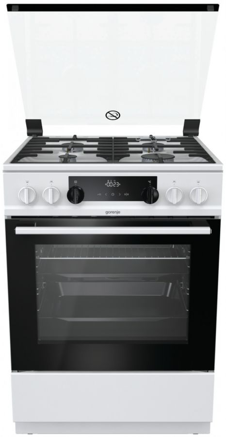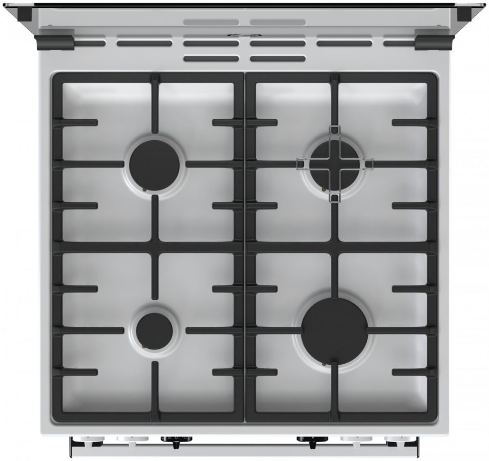 Kombinovaný sporák 60cm s energetickou třídou A. Má 4 plynové hořáky, multifunkční troubu 65 l, termoelektrickou pojistku a dvojité zasklení dveří trouby s reflexní vrstvou.
