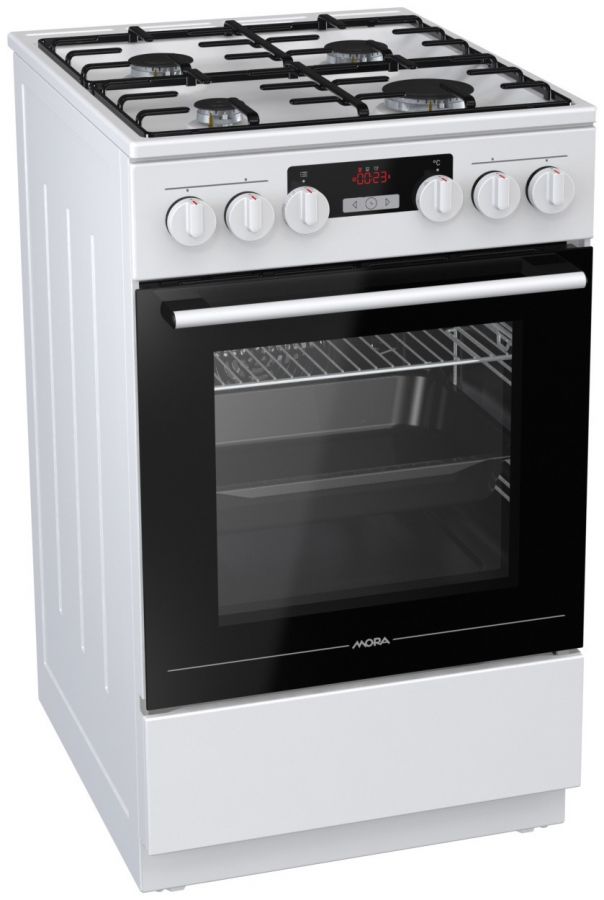 Kombinovaný sporák Mora K 667 AW v bílém provedení s multifunkční troubou Vás překvapí energeticky úspornou třídou "A" i vnitřním objemem trouby 70 l. Plynové hořáky osazené pojistkou STOP GAS s integrovaným zapalováním jsou kryté dvoudílnou mřížkou STABIL PLUS, která zajistí bezpečný posun nádobí ve všech směrech. Díky digitálnímu časovému spínači s hodinami se Vám již nikdy nespálí oběd. Výkonná multifunkční trouba má celkem osm různých programů nejen klasické pečení, je zde možnost péct na kruhovém topném tělese s ventilátorem = horkovzdušné pečení. Pro zvýšení komfortu obsluhy je trouba vybavená teleskopickým výsuvem, které umožní bezpečnou manipulaci s připravovaným jídlem, aniž byste ho museli z trouby vytáhnout. Nové bezpečné závěsy dvířek KOMFORT zaručují bez Vaší asistence velmi tiché a šetrné zavírání dvířek trouby. Ve spodní části sporáku je praktický úložný prostor ve formě zásuvky, do kterého snadno uložíte příslušenství v podobě roštu a XXL hlubokého pekáče.