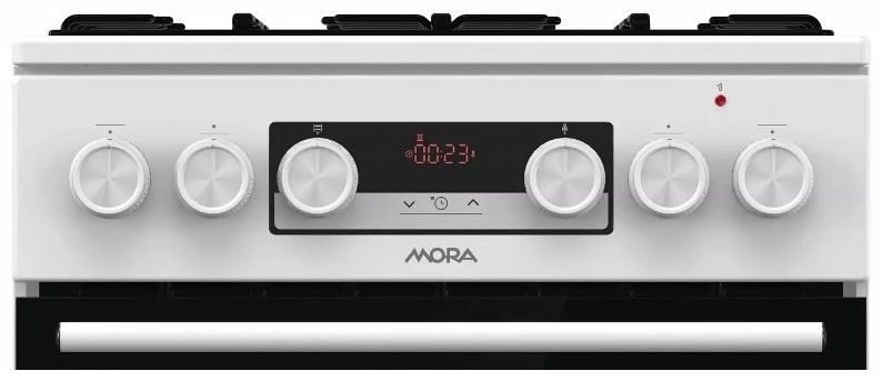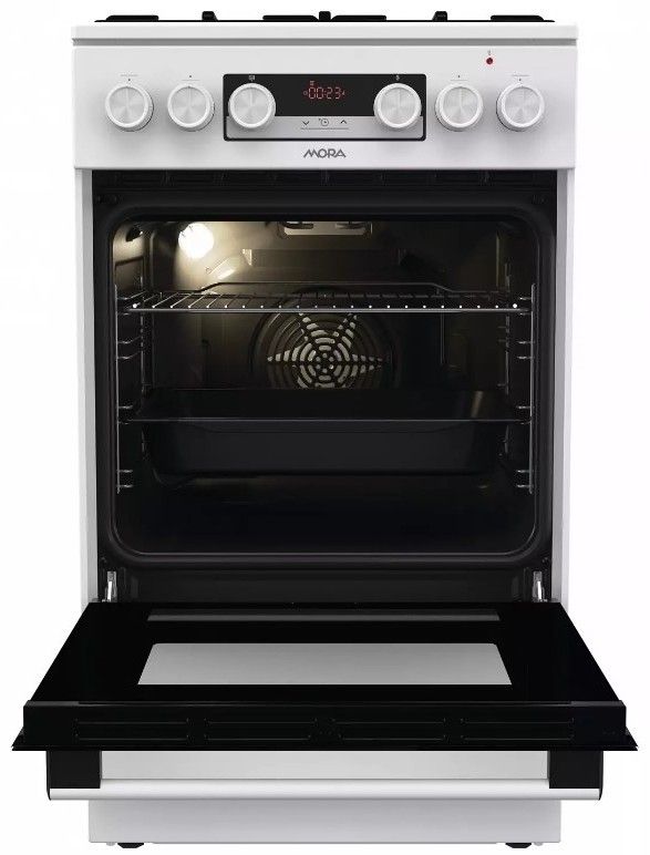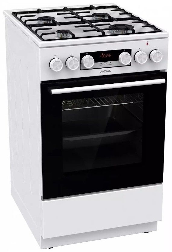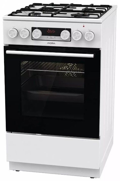 Kombinovaný sporák Mora K 7655 CW v bílém provedení s multifunkční troubou v objemu 70 l Vás překvapí energeticky úspornou třídou A. Plynové hořáky s pojistkami STOP GAS a integrovaným zapalováním jsou kryté dvoudílnou mřížkou STABIL PLUS, která zajišťuje bezpečný posun nádobí ve všech směrech. Díky digitálnímu časovému spínači s hodinami se Vám již nikdy nespálí oběd, tato praktická funkce Vám přinese mnoho užitku. Lze nastavit odložený start a ukončení pečení, pouze ukončení pečení a minutka, samozřejmostí je nastavený aktuální čas. Dále je trouba vybavená 11 pečicími programy, které jsou navržené přesně podle potřeb konkrétních jídel. Vykouzlíte například výbornou pizzu jako z italské restaurace (program Pizza), pomalu upečete pečínku a efektivně rozmrazíte hotové porce jídla. Pokud si rádi pochutnáváte na hranolkách nebo kuřecích nugetách, ale nedopřáváte si je tak často kvůli vysoké kalorické hodnotě, můžete také zkusit program pro horkovzdušné fritování bez tuku. Hotovky většinou volíme tehdy, když nás tlačí čas. Se speciálním programem pro hotová a mražená jídla ho ušetříte ještě víc, protože si připravíte chutný oběd rychleji, bez nutnosti předehřívání trouby. Výsledek však bude dokonalý, a tak si v klidu vychutnáte třeba kuřecí nugety, lasagne, hranolky nebo croissanty. Zvykli jste si, že předehřátí trouby trvá celou věčnost? Na to teď zapomeňte. Tato trouba se předehřeje na 200 ˚C do 5 minut, což je mnohem rychleji, než bývá zvykem. Ve spodní části sporáku je praktický úložný prostor, do kterého snadno uložíte příslušenství v podobě roštu a MAXI pekáče XXL o objemu až 8 l. Perfektní vyčištění vnitřního prostoru po každém pečení zajistí funkce ECO CLEAN, díky které odstraníte i větší nečistoty bez nutnosti použít čisticí prostředek.