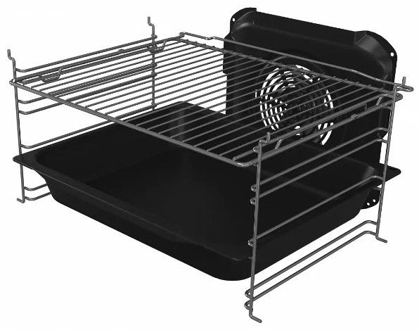 Další funkce: eletrický gril s ventilátorem, připojovací napětí 230V, hluboký plech, typ vařidlové mřížky