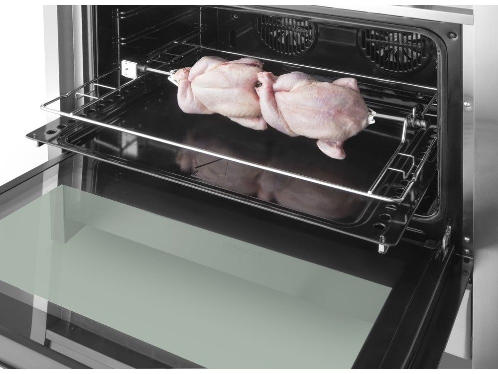 Kombinovaný sporák model PCGD 900 X v šířce 90 cm má k dispozici plynovou varnou desku s pěti hořáky včetně oblíbeného hořáku WOK. Elektrická pečicí trouba o objemu 103 litrů obsahuje dokonce dva horkovzdušné ventilátory pro optimální pečení v celém prostoru. Funkce elektrické trouby má 8 pečících režimů.