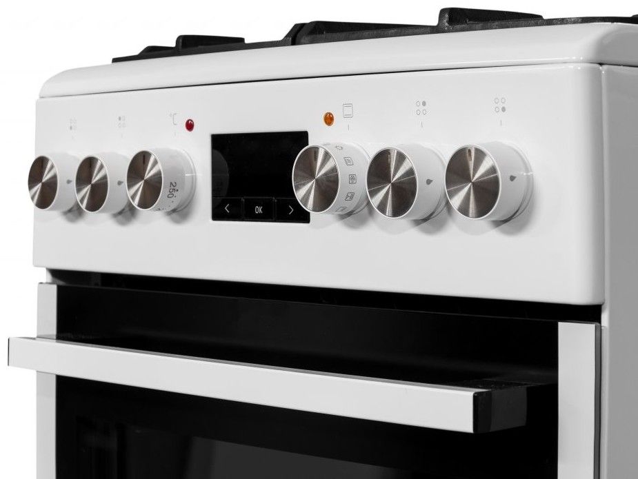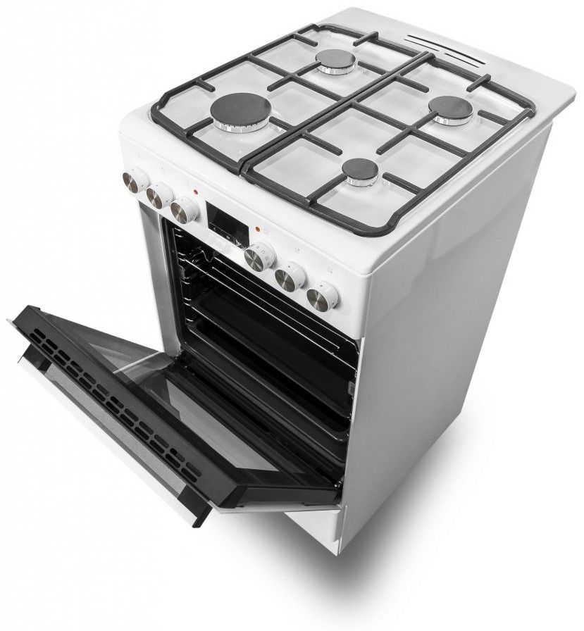 Kombinovaný sporák s energetickou třídou A. Má 4 plynové hořáky, objem trouby 65 l a zabezpečení proti úniku plynu.