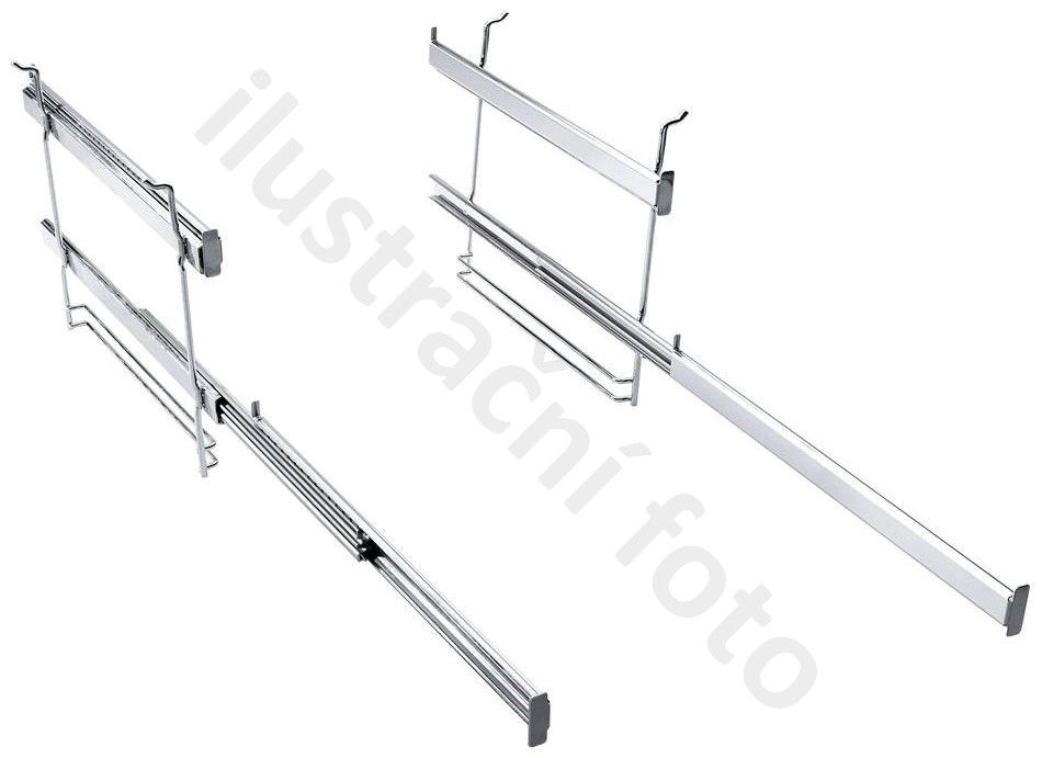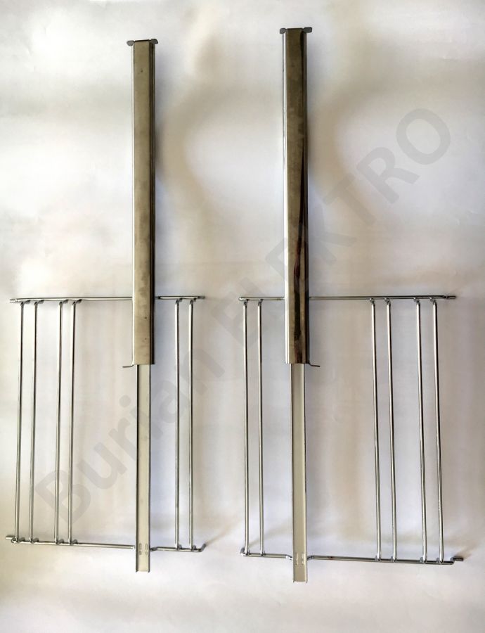 Teleskopické výsuvné rošty s 1 výsuvem určené do sporáků široké 50 cm, s drátěnými rošty po stranách, modely od 2017.