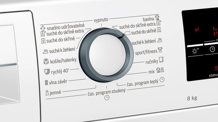 Vyberte si z různých programů sušení určených pro různě upravené textilie.