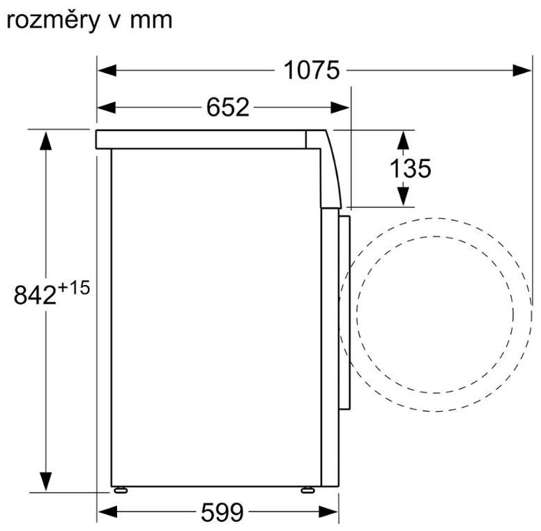 Hloubka spotřebiče s otevřenými dvířky: 107,5 cm
