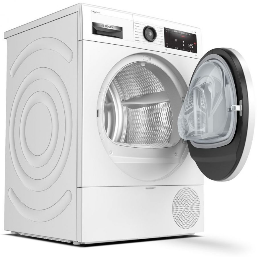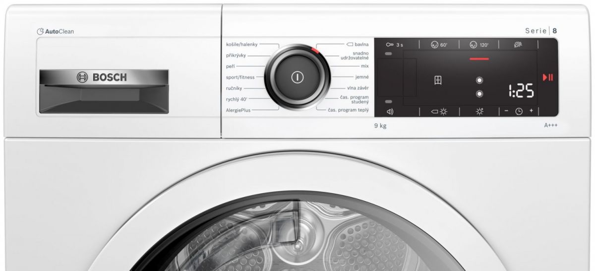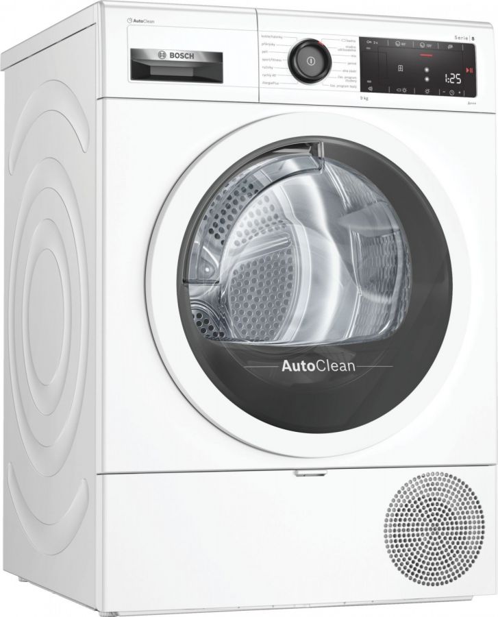 - Technologie AutoClean se samočištěním kondenzátoru nevyžadující filtr ve dvířkách odstraňuje nutnost pravidelného čištění zbytků tkanin, a to při zachování vysokého výkonu.
