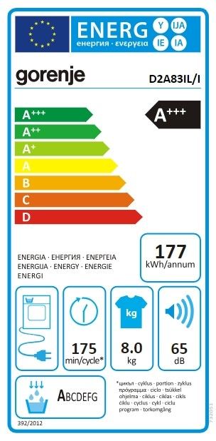 Kondenzační sušička s tepelným čerpadlem maximální kapacitou 8 kg a třídou spotřeby energie A+++.