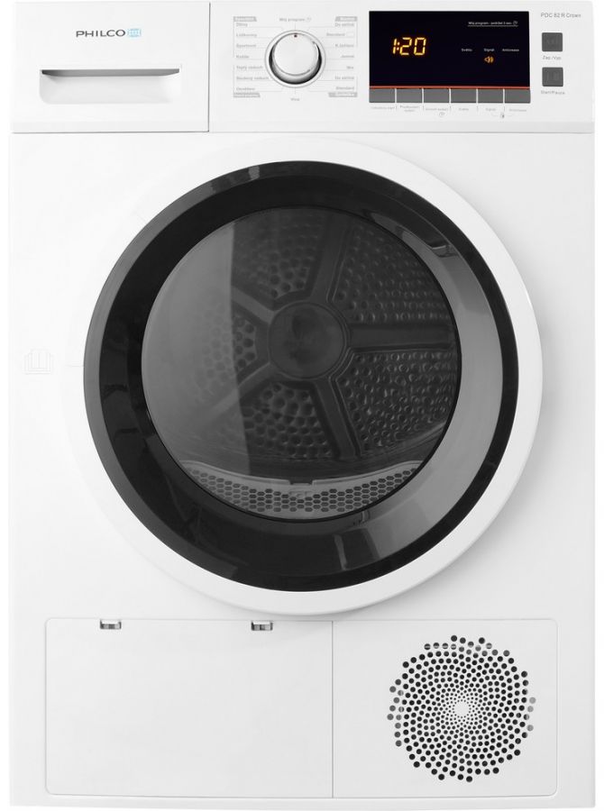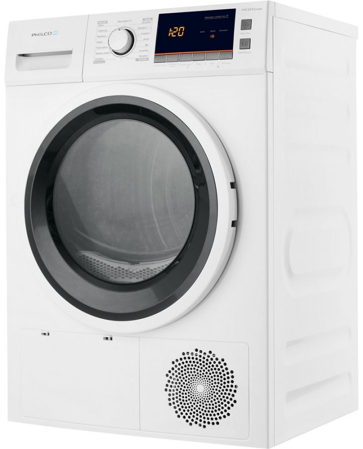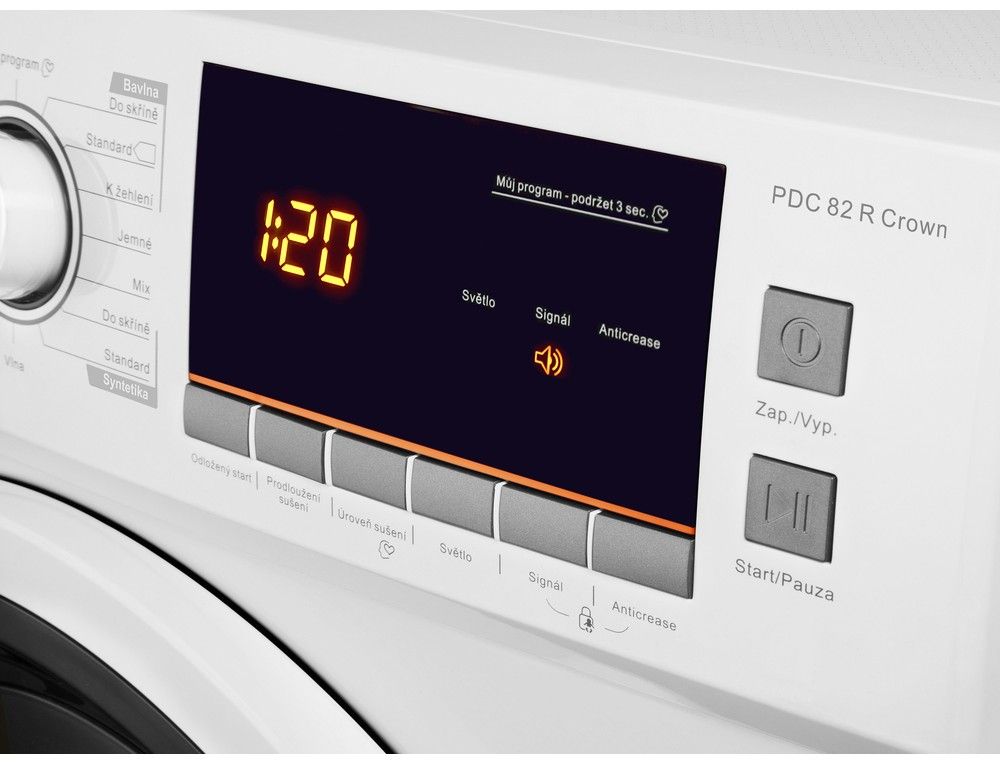 Sušička prádla s tepelným čerpadlem Philco PDC82R Crown, zaujme nejen svou mimořádnou specifikací, ale i velkým, lehce čitelným displejem a českým popisem ovládacího panelu. První sušička, která šetří textilie, čas i peníze na vrcholné úrovni. Kapacita 8 kg v elegantním designu a dokonalém souladu s pračkami Philco Crown.