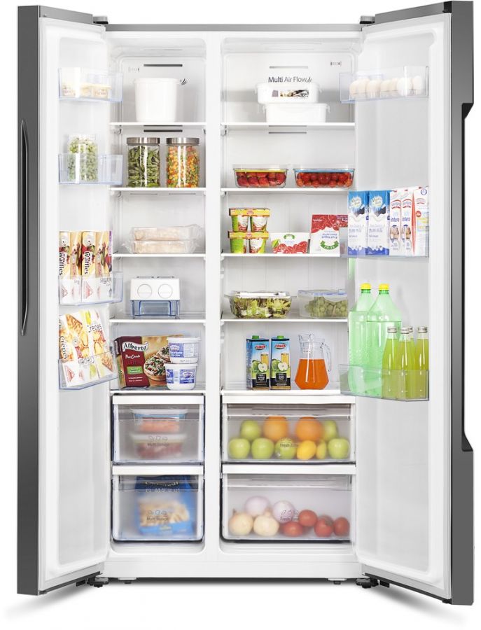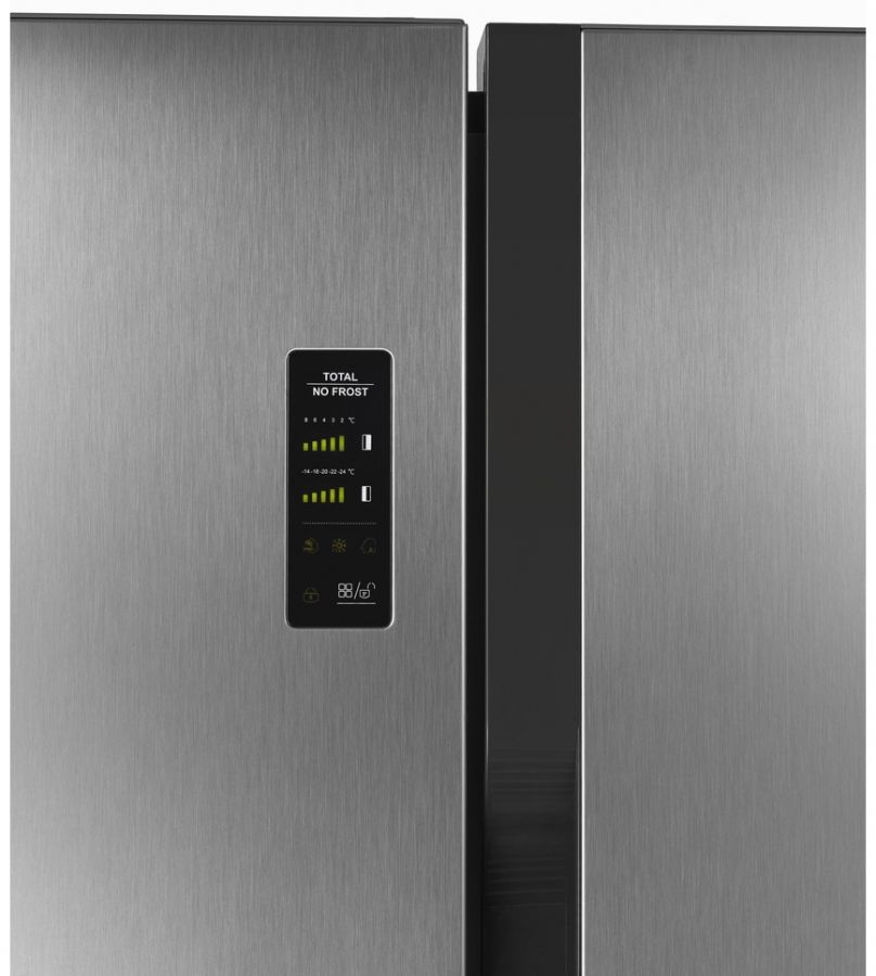 Americká chladnička model PPL5161X Side by Side o objemu 519 litrů a systémem NoFrost. Již nikdy nebudete odmrazovat a potraviny budete skladovat bez námrazy a jejich vzájemného přimrzání. Systém Multiairflow vnitřní cirkulace vzduchu uchovává Vaše potraviny déle čerstvé. Přehlednost o uložených potravinách, ale i vyšší úsporu spotřeby energie v chladničce zajišťuje LED osvětlení. Mezi předními funkcemi jsou SuperFreeze, SuperCool včetně klasických režimů chlazení Holiday, Eco a spousta dalších.