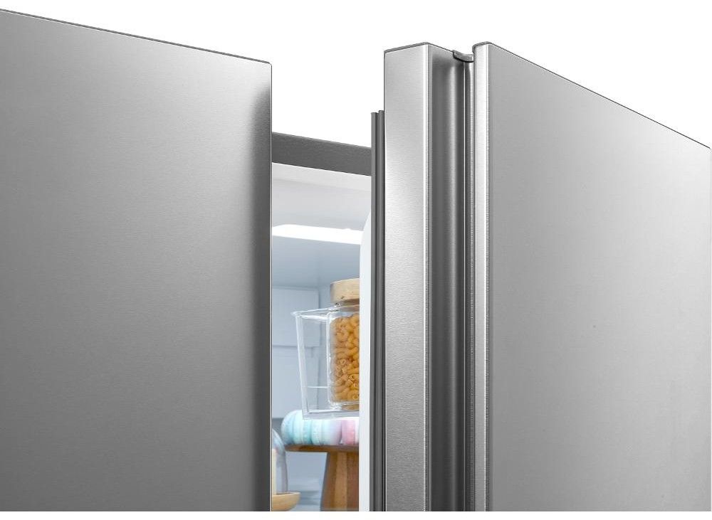 Elegantní nerezový design je opatřen integrovaným madlem s antibakteriální úpravou, které je doplněno i těsněním, které pomáhá snížit množení nežádoucích mikroorganismů uvnitř chladničky.