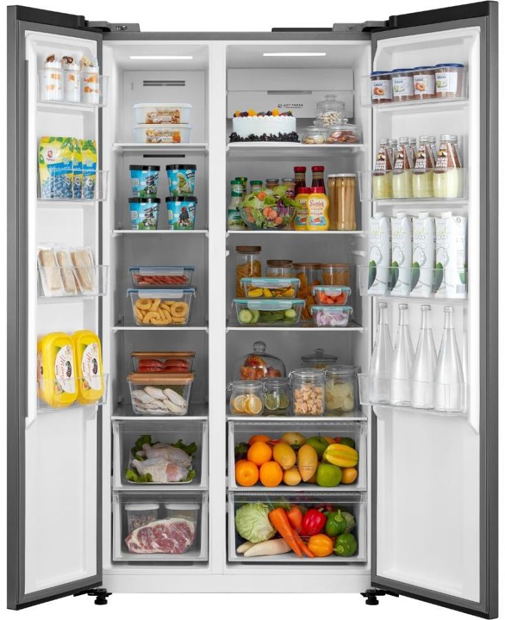Americká chladnička Philco PXSBSI 592 AX s XXL objemem chlazení 379 l a mrazení 213 l v energetické třídě A s velmi tichým provozem – jen 35 dB.