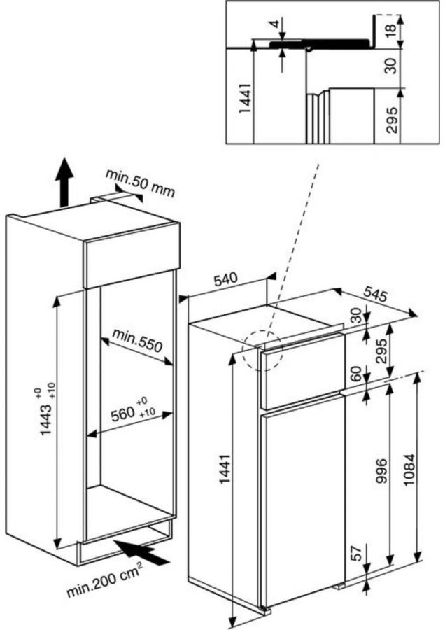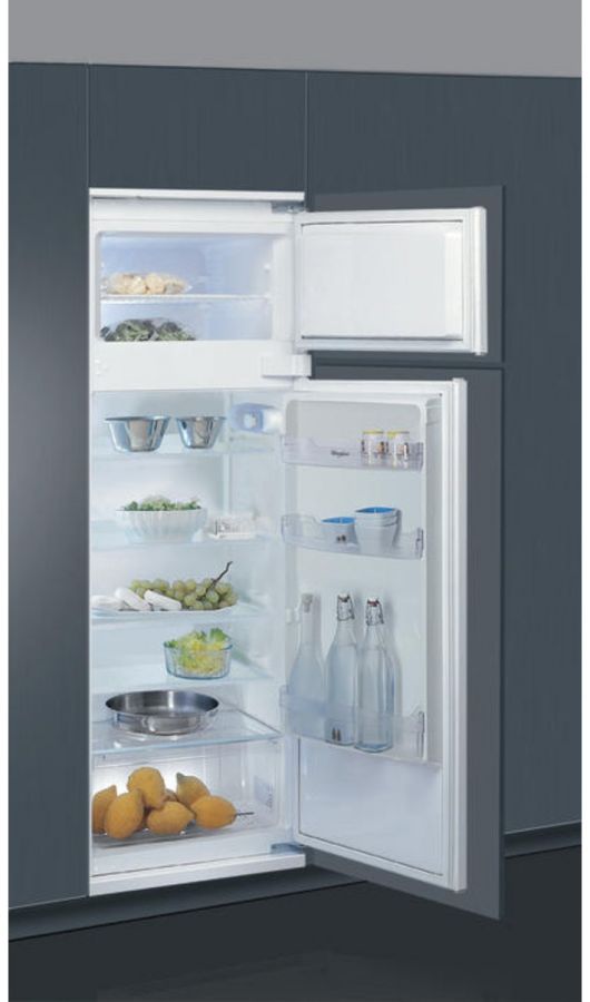 Vestavná dvoudveřová chladnička s mrazákem nahoře s energetickou třídou A+ o celkovém užitném objemu 220 l. Objem chladničky 178 l a objem mrazničky 42 l.