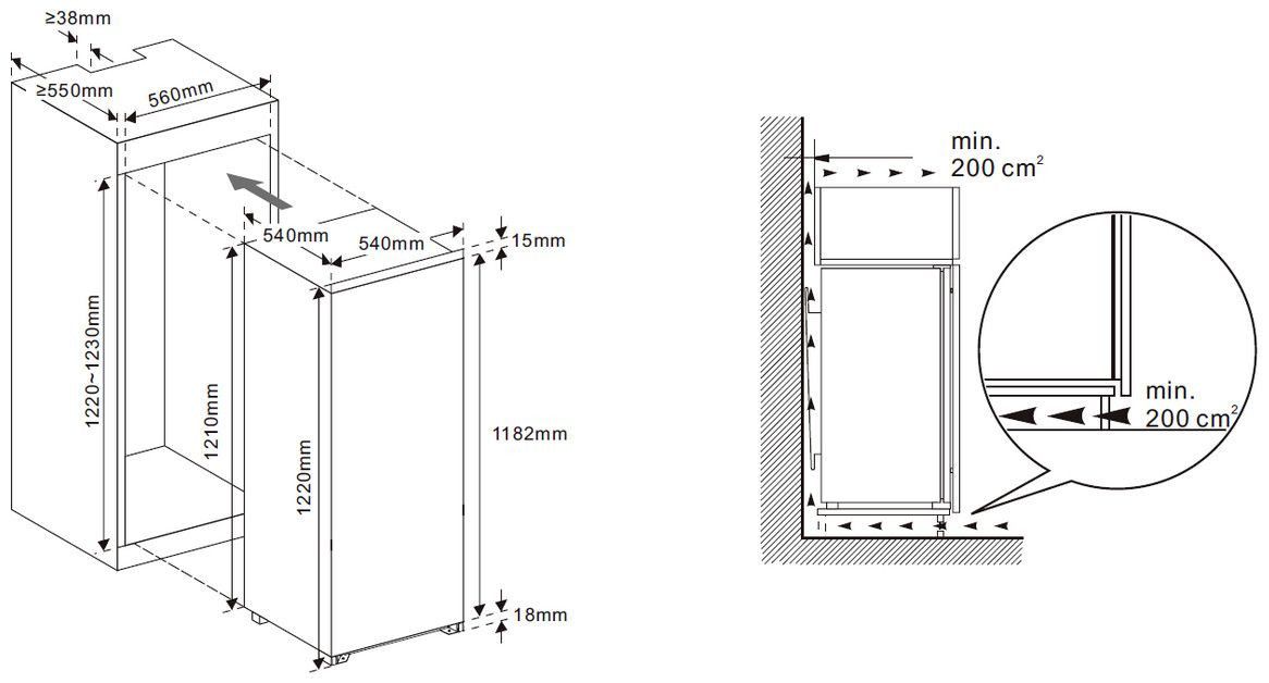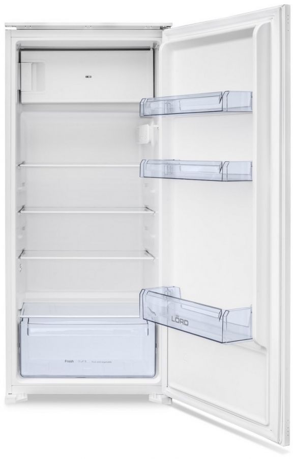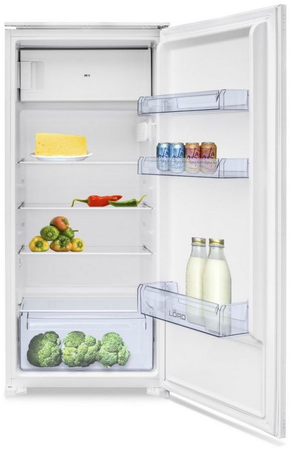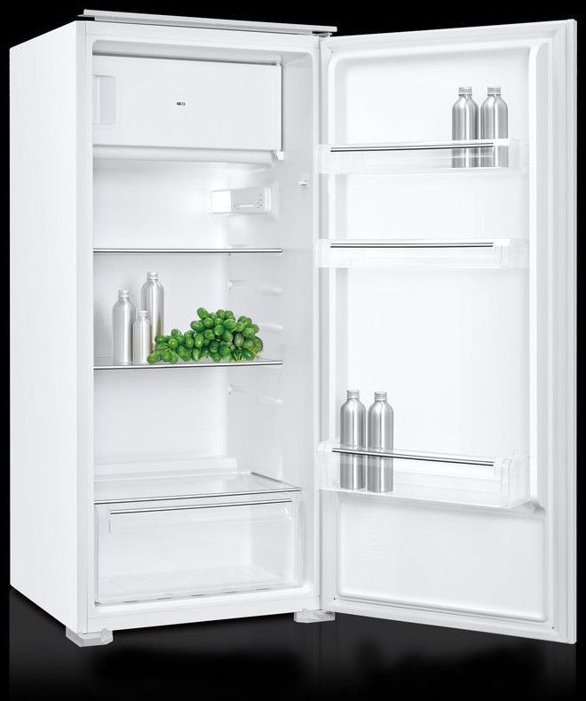 Vestavná chladnička o celkovém užitném objemu 181 l. Objem chladničky 167 l a objem mrazničky 14 l.