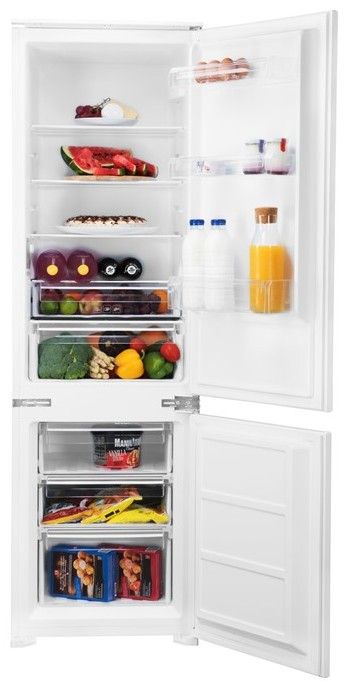 Vestavná kombinovaná chladnička o celkovém užitném objemu 249 l. Objem chladničky 179 l a objem mrazničky 70 l.