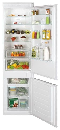 Vestavná kombinovaná chladnička o celkovém užitném objemu 281 l. Objem chladničky 219 l a objem mrazničky 62 l