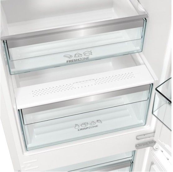 Prostorná zásuvka CrispZone je navržena tak, aby zachovala živiny a prodloužila čerstvost vašich potravin díky nízké teplotě a možnosti nastavení úrovně vlhkosti. Teleskopické lišty umožňují ještě snadnější otevření zásuvky a přístup k potravinám uvnitř.