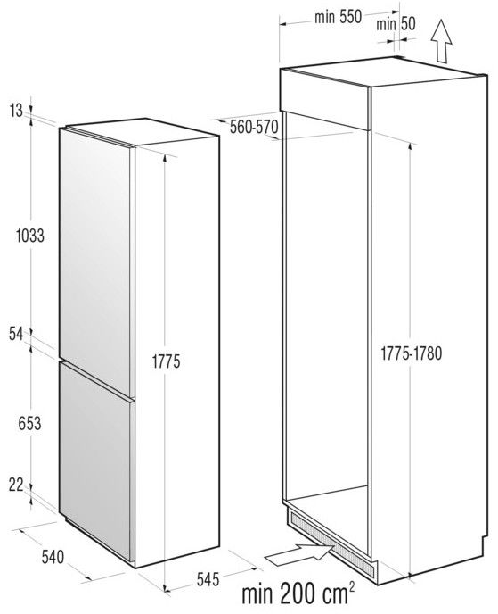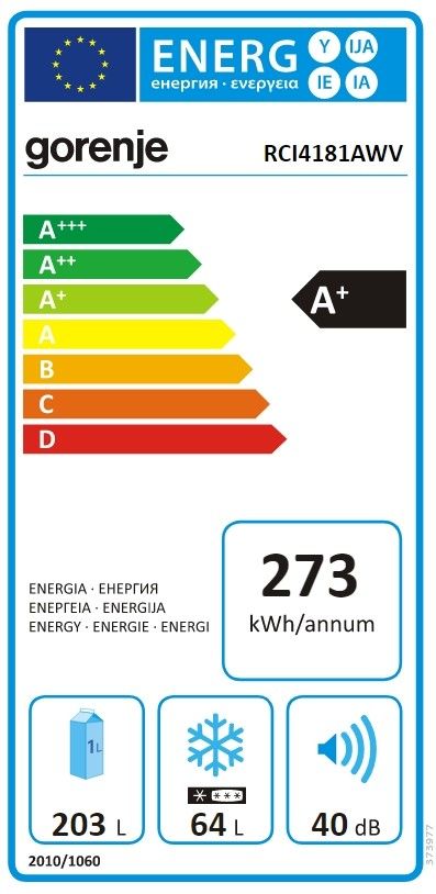 Vestavná kombinovaná chladnička s energetickou třídou A+ o celkovém užitném objemu 267 l. Objem chladničky 203 l a objem mrazničky 64 l.