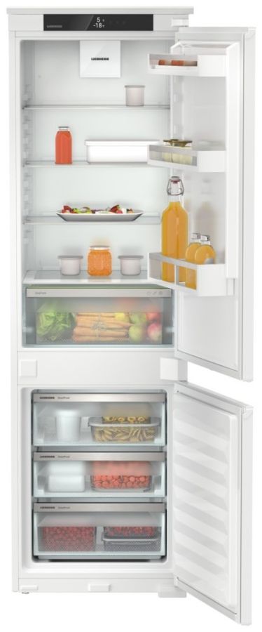 Vestavná kombinovaná chladnička o celkovém užitném objemu 264 l. Objem chladničky 183 l a objem mrazničky 81 l.