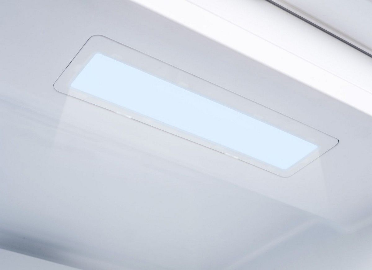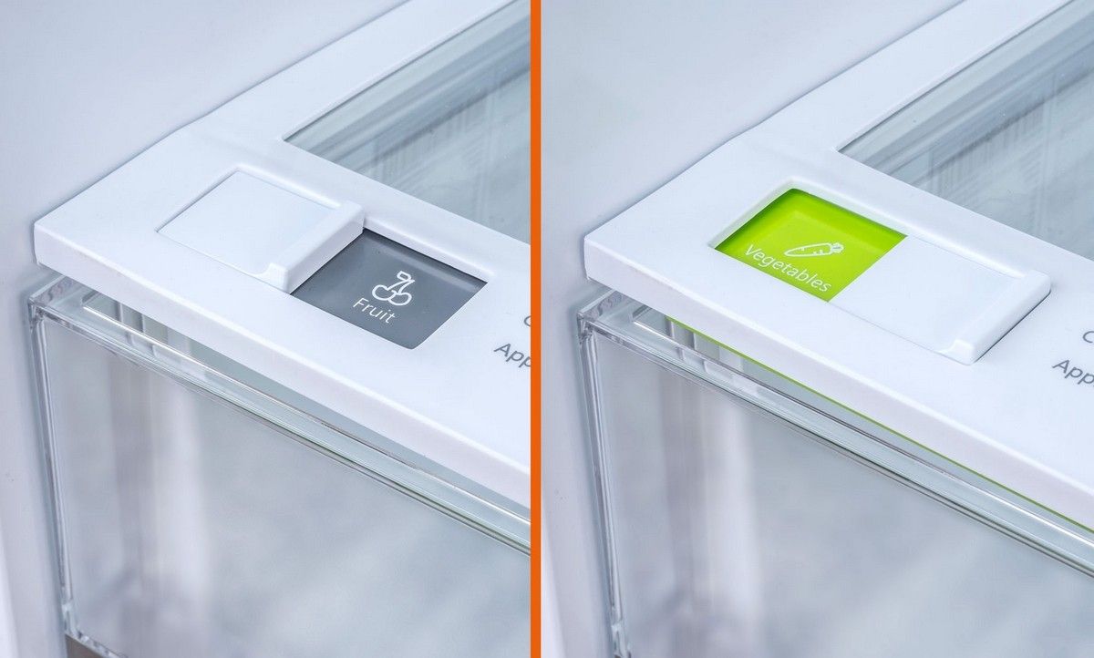 Zásuvka pro ovoce a zeleninu dokáže tento choulostivý druh potravin udržet déle čerstvý. Dokonalý přehled o celém prostoru chladničky zajistí úsporné a odolné LED osvětlení. Dveřní panty najdete na pravé straně, je ale možné je zaměnit.