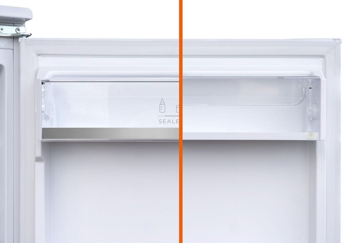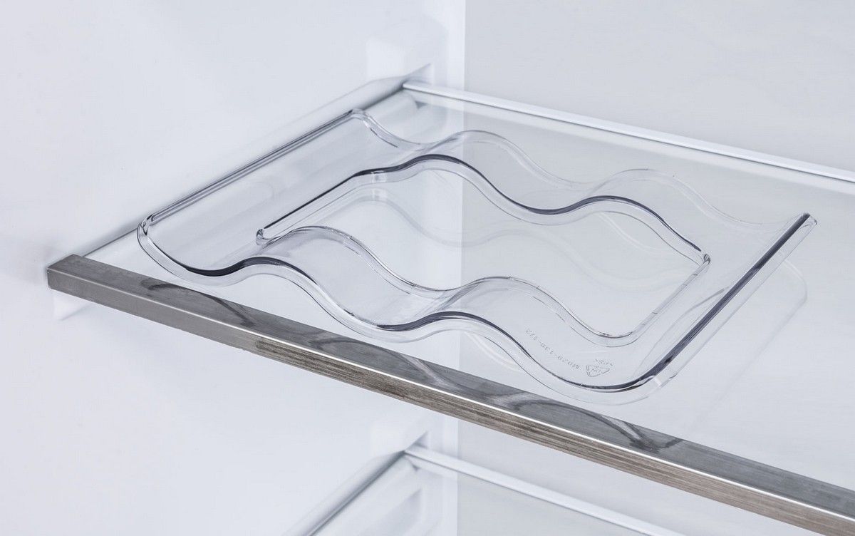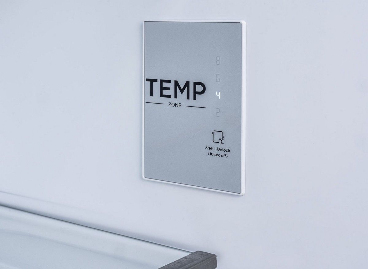 V chladicí části lze využít celkem čtyři police z bezpečnostního skla, z nichž je jedna výškově nastavitelná. Ve dveřích pak najdete tři police, které využijete na skladování nápojů a drobnějších potravin.
