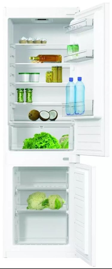 Vestavná kombinovaná chladnička o celkovém užitném objemu 270 l. Objem chladničky 195 l a objem mrazničky 75 l.