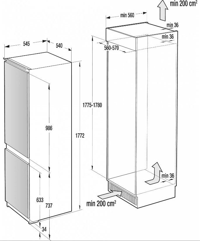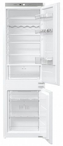 Vestavná chladnička s elektronickým ovládáním potěší energeticky úspornou třídou A++, beznámrazovou technologií NoFrost s 2 nezávislými okruhy a LED osvětlením. Chladicí prostory se automaticky odmrazují a díky nové technologii odmrazování IceLimit se sníží tvorba ledu a není tak potřeba žádného manuálního odmrazování mrazničky. Chladnička je vybavena drátěným roštem na lahve, čtyřmi policemi, policemi ve dveřích a miskou na vajíčka. Součástí chladničky je i mraznička se 3 zásuvkami: horní zásuvka slouží pro rychlé zamrazení, střední pro běžné potraviny a do dolní velké zásuvky MaxiBox o objemu 38 l je možné vložit velké potraviny, jako např. husa. Pokud dojde k náhlému výpadku proudu, chladnička dokáže udržet nastavenou teplotu až 16 hodin a tím udrží potraviny v perfektním stavu. Praktická je i možnost jednoduché oboustranné záměny závěsů dveří chladničky, aby se otevírání flexibilně přizpůsobilo prostoru a umístění chladničky v kuchyňské lince.
