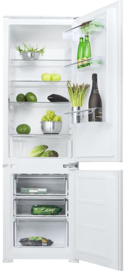 Vestavná kombinovaná chladnička o celkovém užitném objemu 249 l. Objem chladničky 179 l a objem mrazničky 70 l.