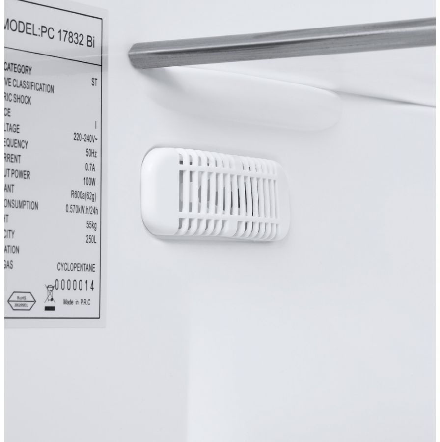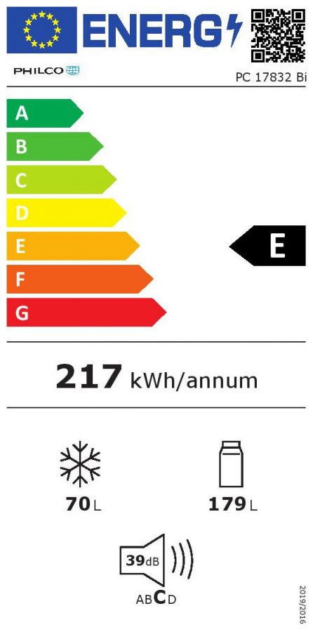 Kombinovaná vestavná chladnička Philco PC 17832 Bi o objemu chladící části 179 litrů a mrazicí části 70 litrů v energetické třidě E. Police z bezpečnostního skla vytváří čistý a jednoduchý design.