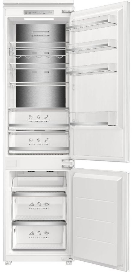 Vestavná kombinovaná chladnička o celkovém užitném objemu 300 l. Objem chladničky 213 l a objem mrazničky 87 l.
