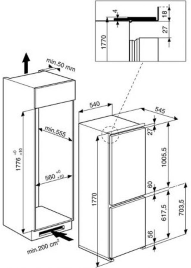 Vestavná kombinovaná chladnička s energetickou třídou A+ o celkovém užitném objemu 275 l. Objem chladničky 195 l a objem mrazničky 80 l.