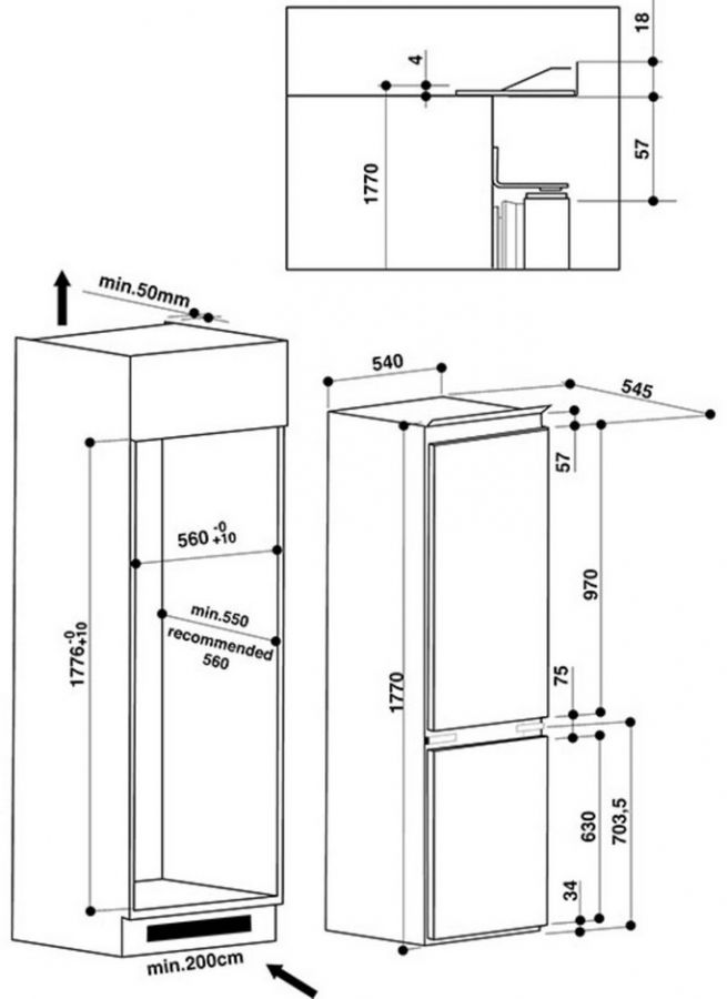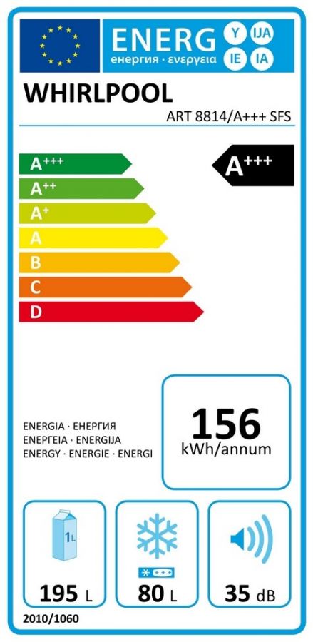 Vestavná kombinovaná chladnička s energetickou třídou A+++ o celkovém užitném objemu 275 l. Objem chladničky 195 l a objem mrazničky 80 l.