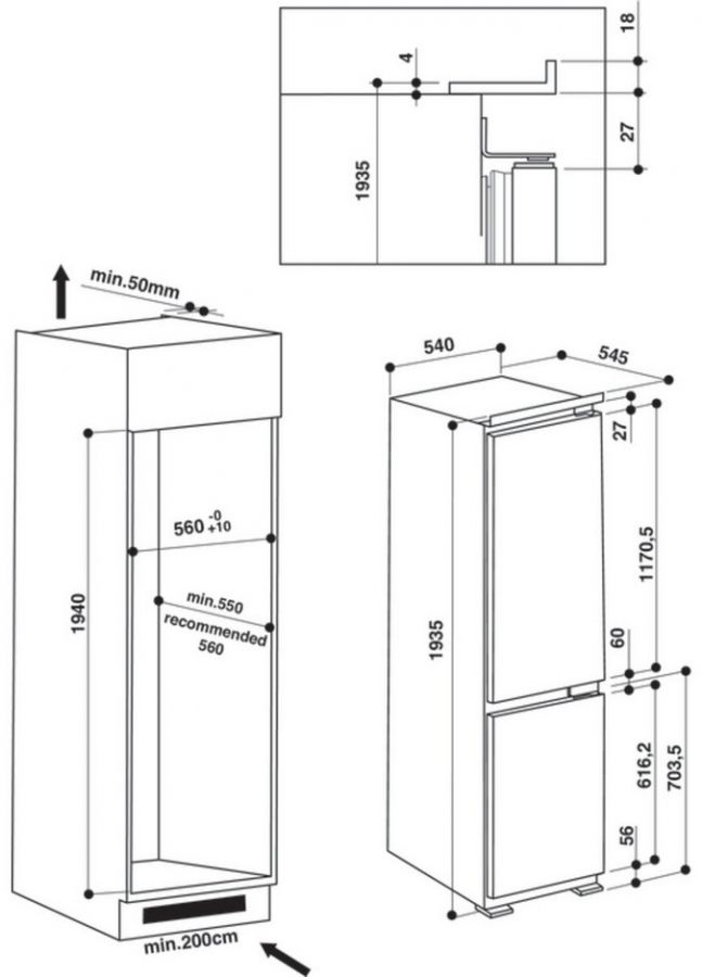 Vestavná kombinovaná chladnička s energetickou třídou A+ o celkovém užitném objemu 300 l. Objem chladničky 237 l a objem mrazničky 63 l.