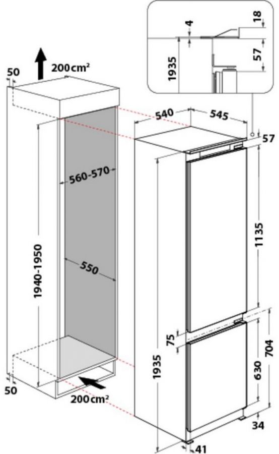Vestavná kombinovaná chladnička s energetickou třídou E o celkovém užitném objemu 306 l. Objem chladničky 227 l a objem mrazničky 79 l.
