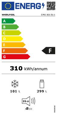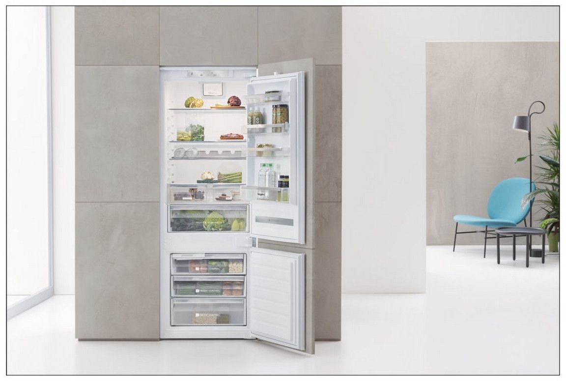 Vestavná kombinovaná chladnička s energetickou třídou B o celkovém užitném objemu 400 l. Objem chladničky 299 l a objem mrazničky 101 l.