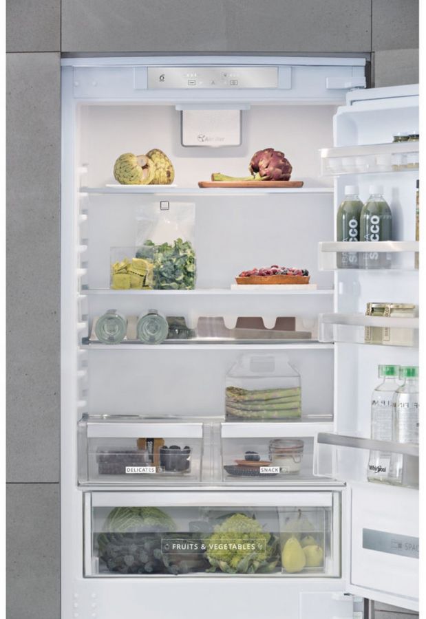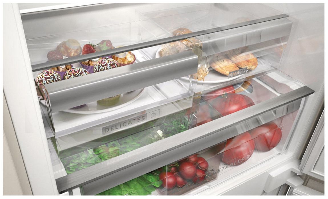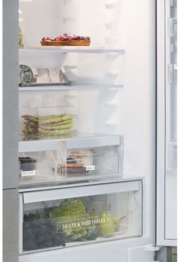 Mimořádně prostorná vestavná kombinovaná chladnička SP40 801 EU 1 s objemem 400 litrů v energetické třídě F a v šířce 69 cm nabízí více místa pro všechny vaše potraviny.