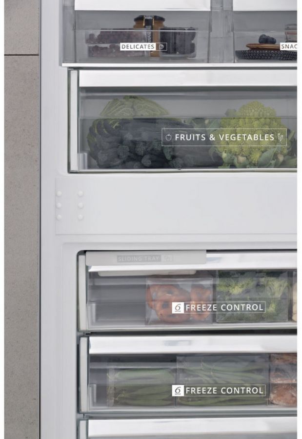 Technologie 6. SMYSL Control zaručuje nepřetržitou kontrolu teploty v reálném čase, okamžitě reaguje na její výkyvy a rychle ji opět přizpůsobí tak, aby byla zachována čerstvost produktů. Navíc minimalizuje teplotní kolísání v mrazáku, čímž chrání potraviny před poškozením mrazem, ztrátou kvality a barvy.