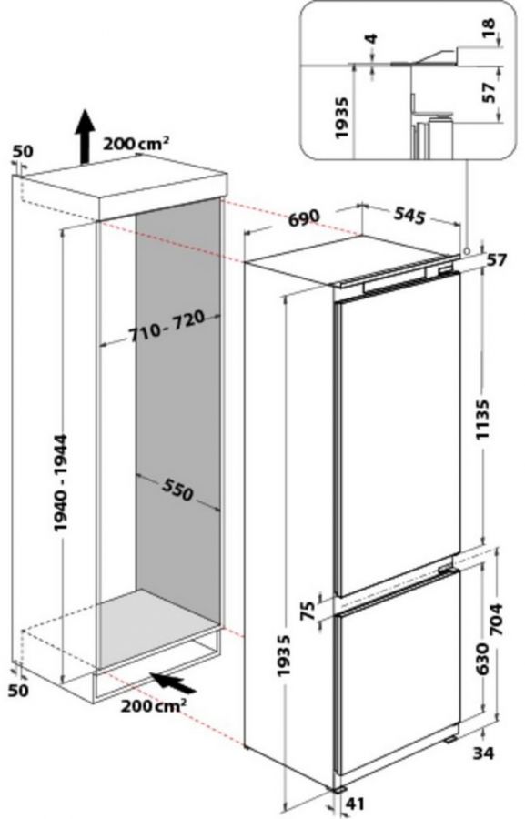 - Využitelný objem chladničky 400 l, výška 1935 mm